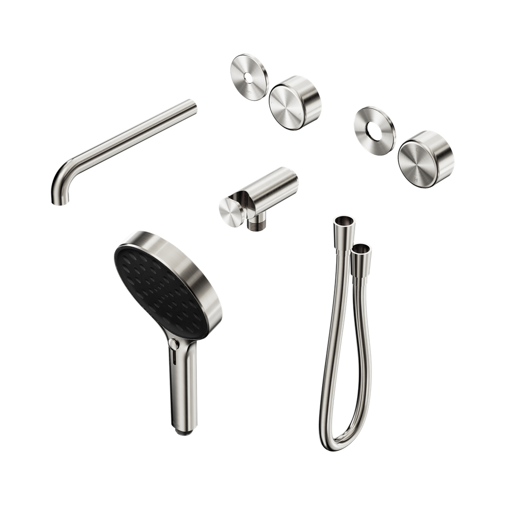 Nero Serenity Progressive Shower System With Spout Metal Handle & Serenity Hand Shower Trim Kit Only Brushed Nickel