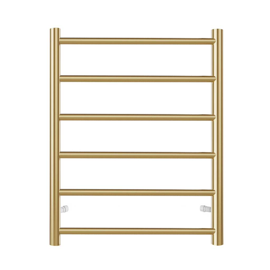 Otti Round Stainless Steel Brushed Gold Electric Heated Towel Rack 6 Bars Universal Inlet