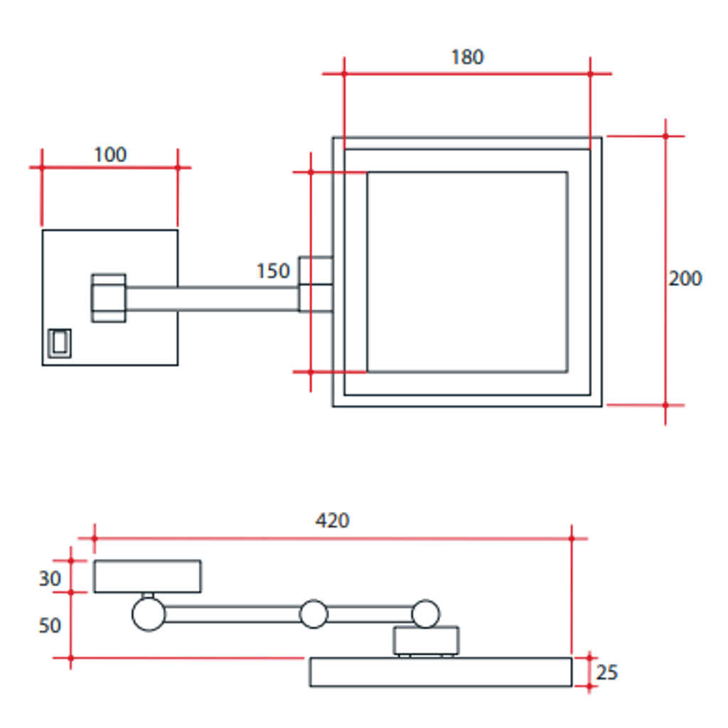 Thermogroup 3x Magnification Chrome Wall Mounted Shaving Mirror, 200x200mm with Exposed Wiring