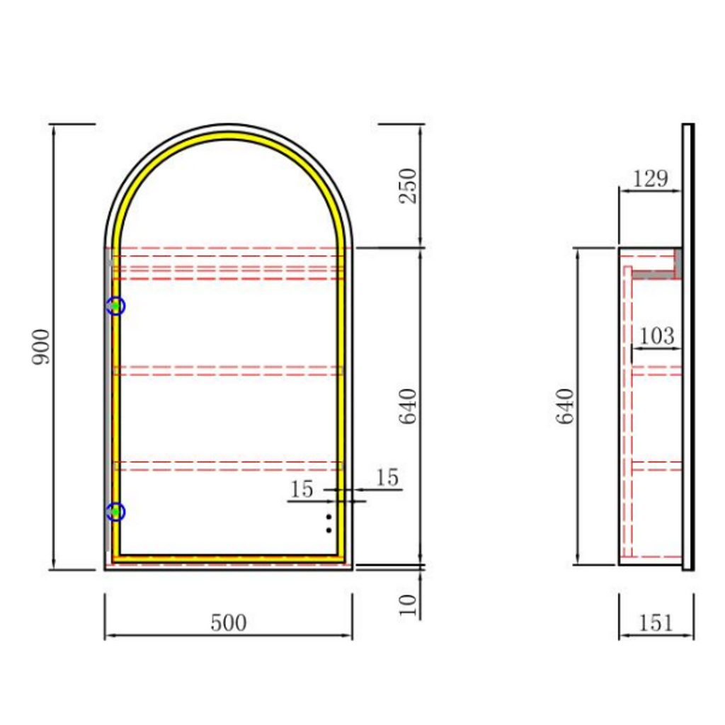 Aulic Canterbury Led Shaving Cabinet Matte White And Brushed Gold Frame
