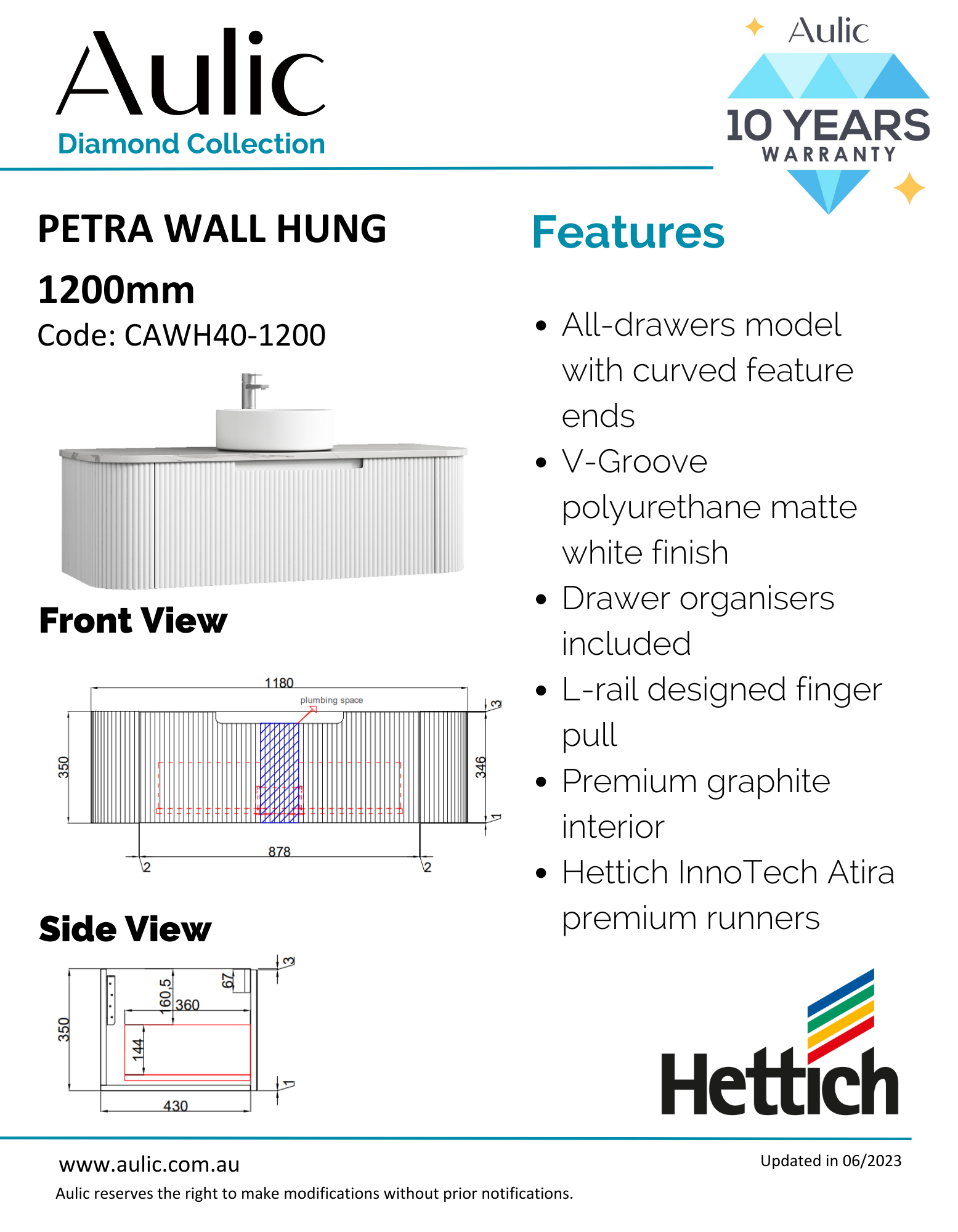 Aulic Petra Mark Ii Wall Hung 1200 Cabinet With Pure Flat Stone Top