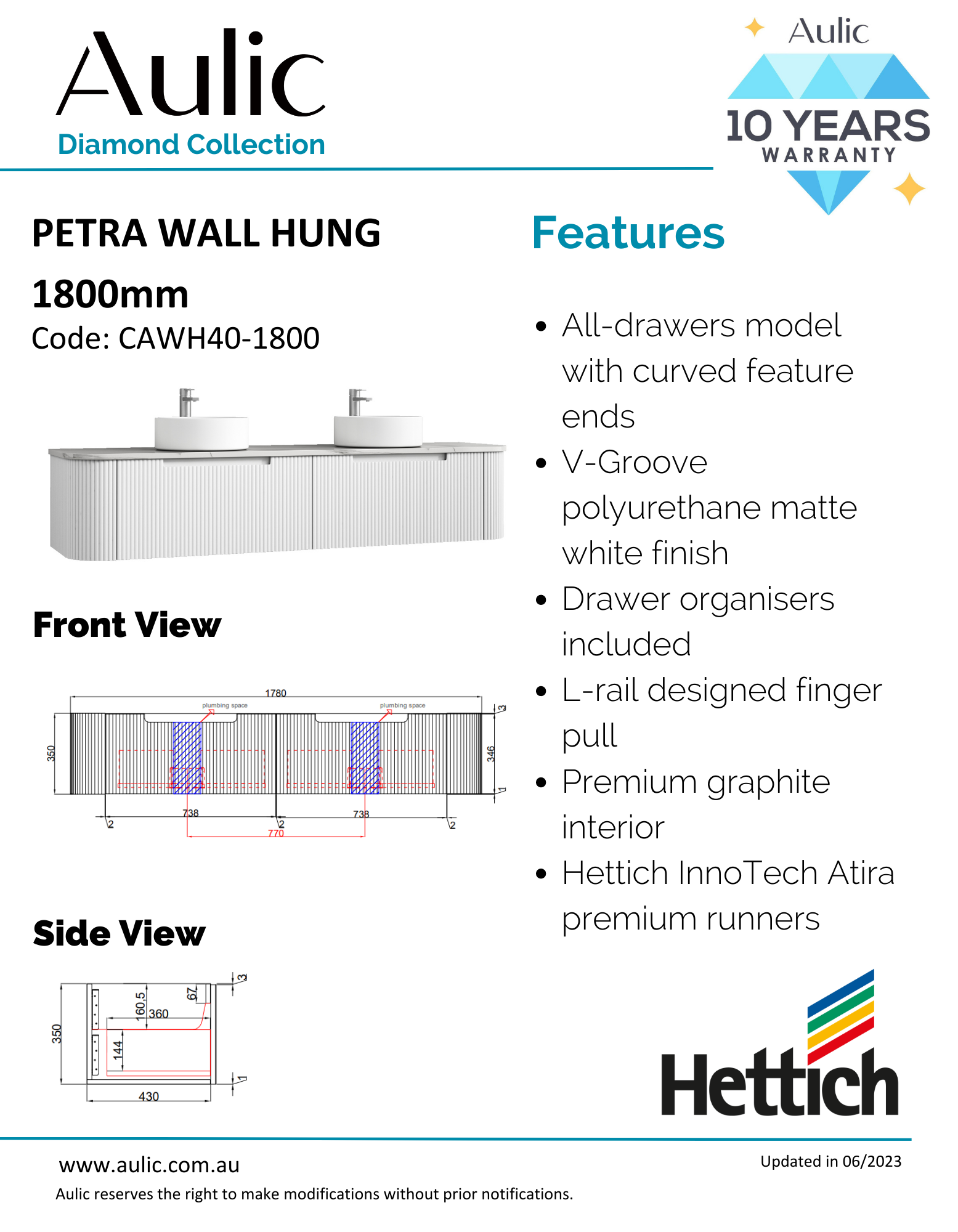 Aulic Petra Mark Ii Wall Hung 1800 Cabinet With Cato Flat Stone Top