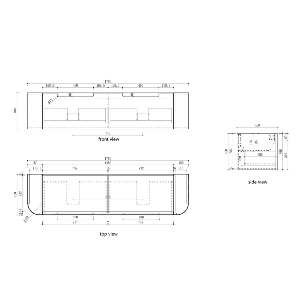 Aulic Varcelli Mono Wall Hung 1800mm Harvest Oak Fluted Curved Cabinet 1780X450X400mm