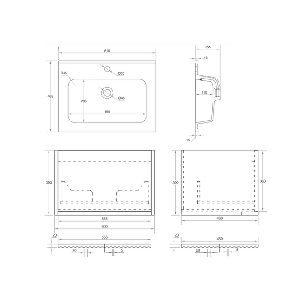 Cassa Design Capture 600mm Wall Hung Vanity Solid Surface Moulded Top Natural Walnut