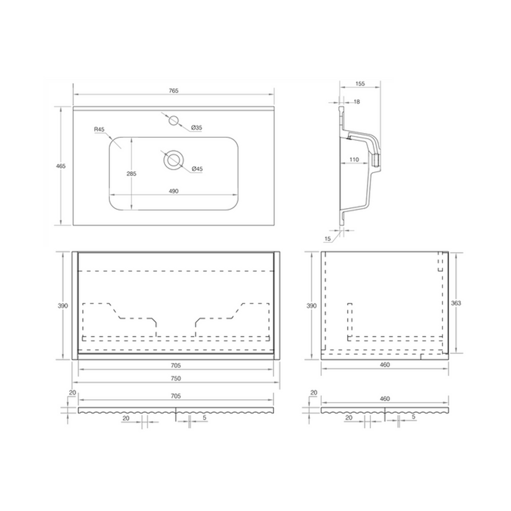 Cassa Design Capture 750mm Wall Hung Vanity Solid Surface Moulded Top Natural Oak