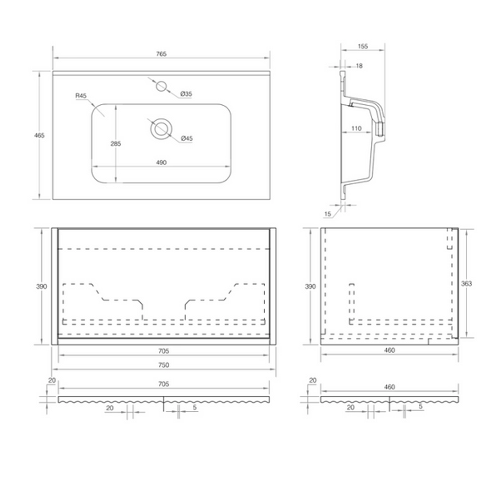 Cassa Design Capture 750mm Wall Hung Vanity Solid Surface Moulded Top Natural Walnut