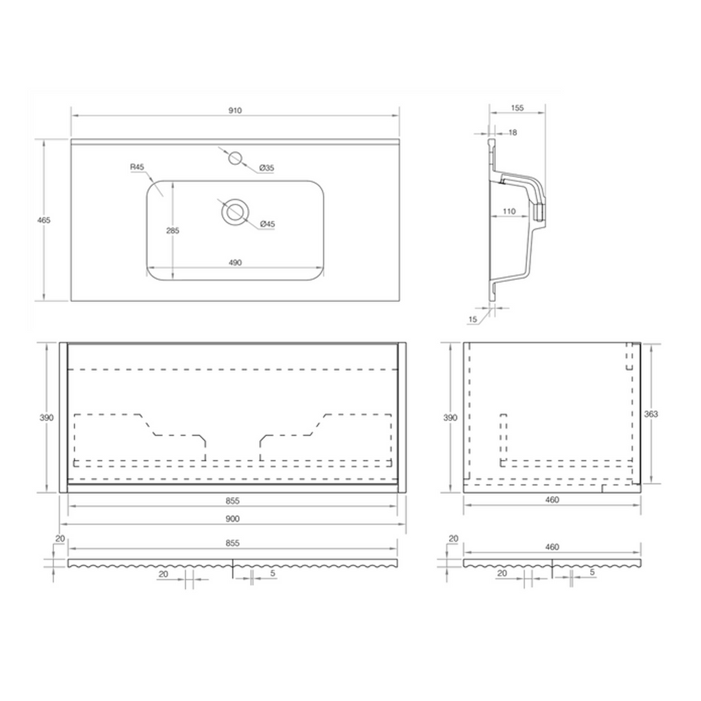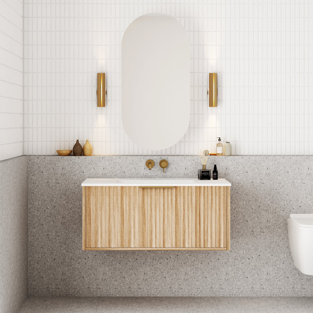 Cassa Design Capture 900mm Wall Hung Vanity Solid Surface Moulded Top Natural Oak