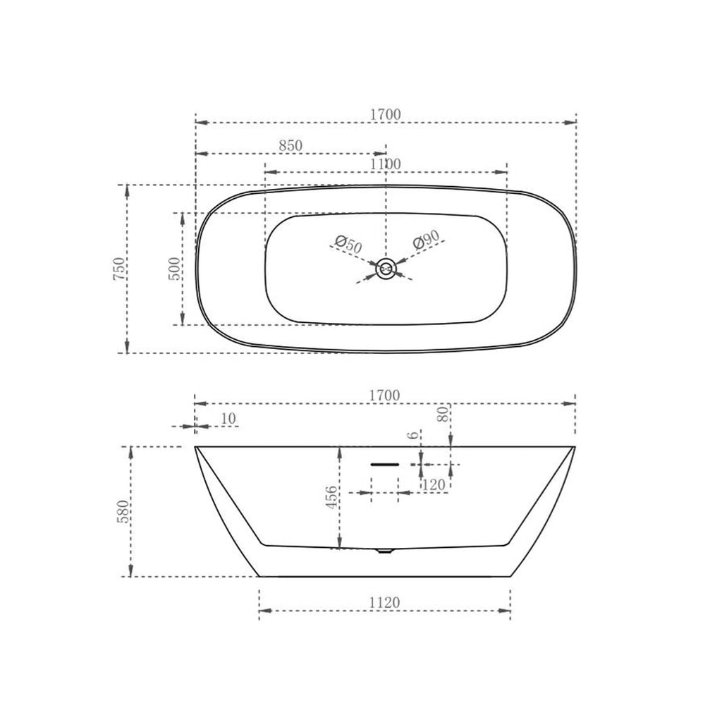 Cassa Design Rec Slimline Bath Gloss White 1700mm