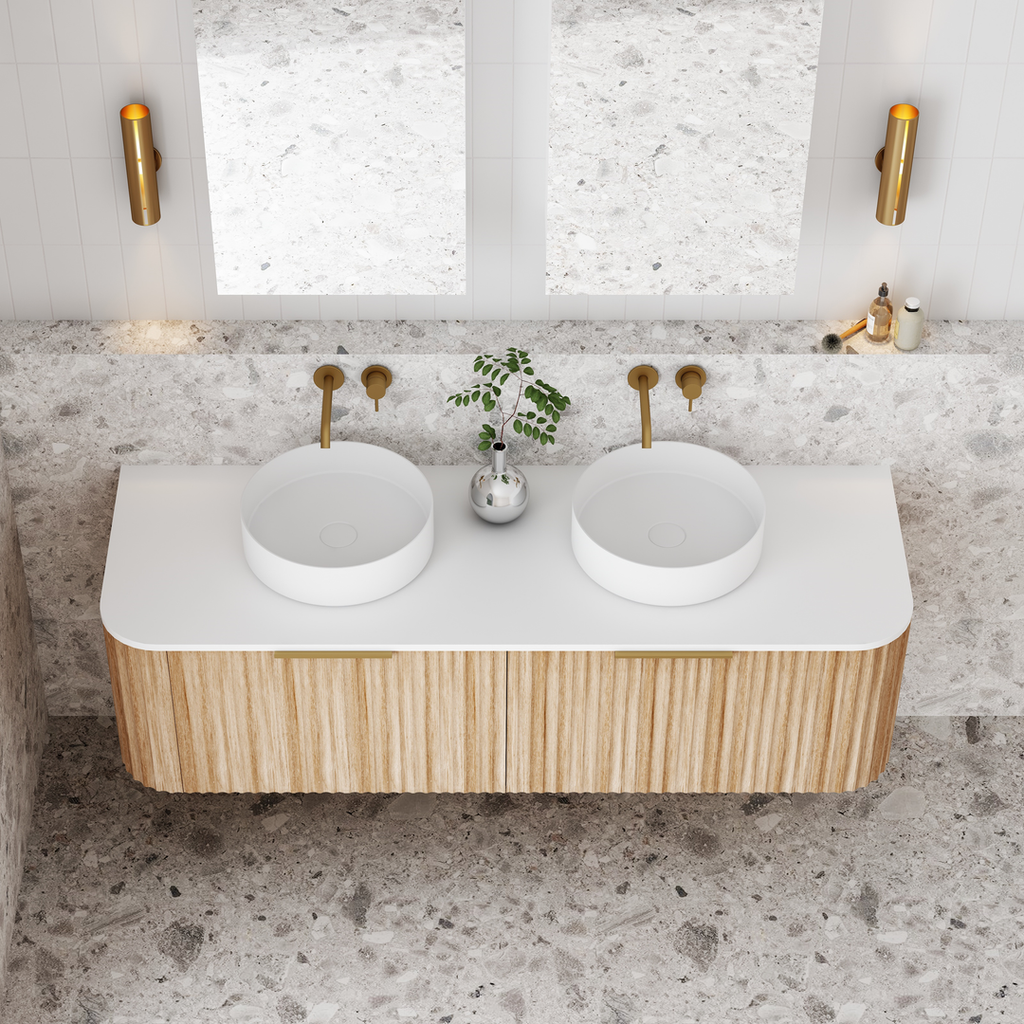 Cassa Design V-Groove 1500mm Curved Wall Hung Vanity Ultracompact Stone Top Natural Oak