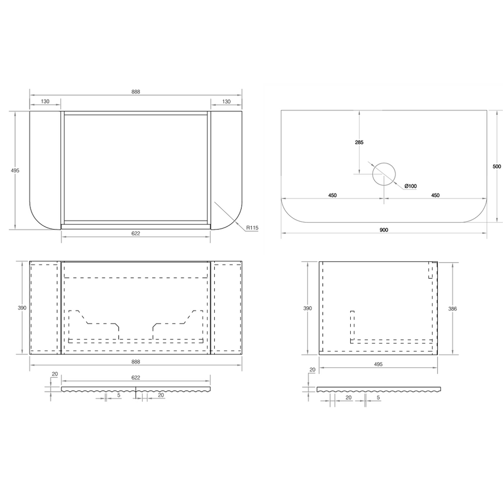 Cassa Design V-Groove 900mm Curved Wall Hung Vanity Ultracompact Stone Top Natural Oak