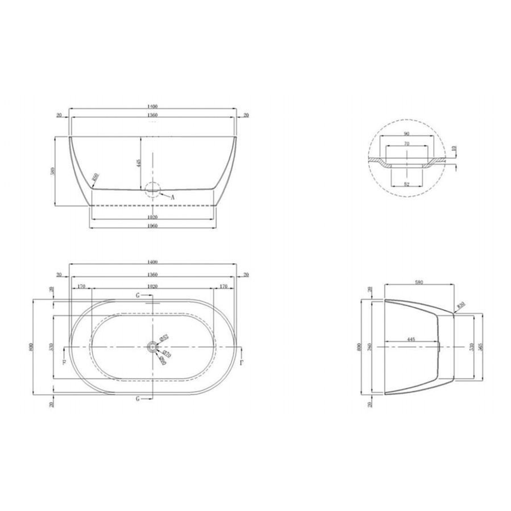 Castano Positano Freestanding Bath 1800mm