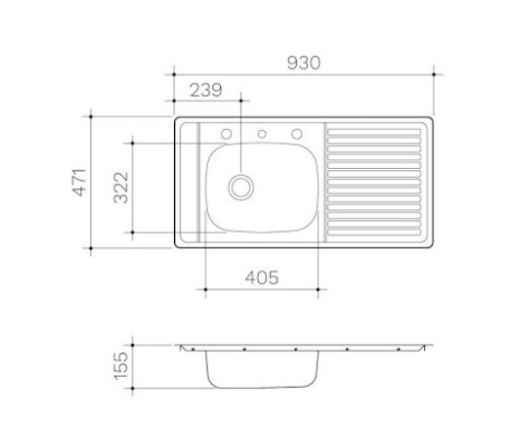 Clark S/S Sink F/Line 1003F 930mm L/H Sngl Bowl 3 Tap Hole