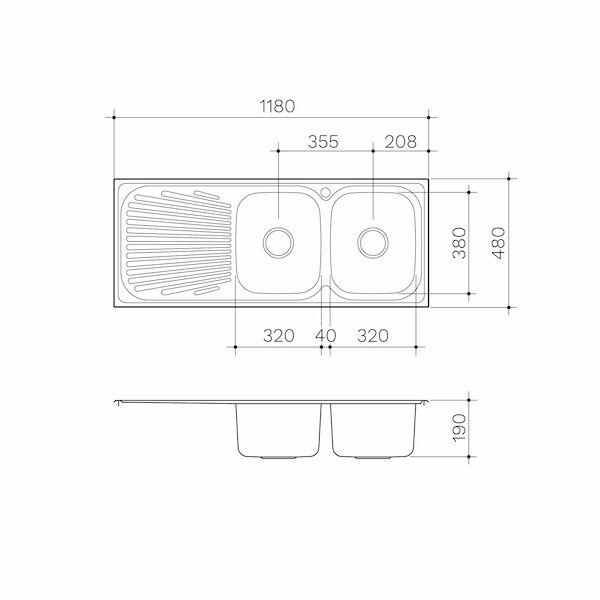 Clark Vital 1180mm Double End Bowl Sink 1129 1 Tap Hole Right