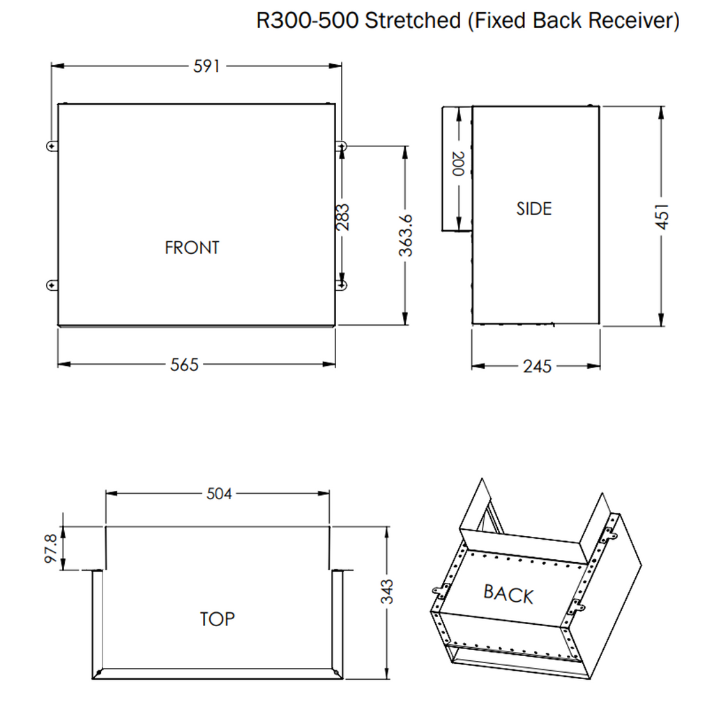 Dam Buster Stretched R300-500 Rainhead With Fixed Receiver
