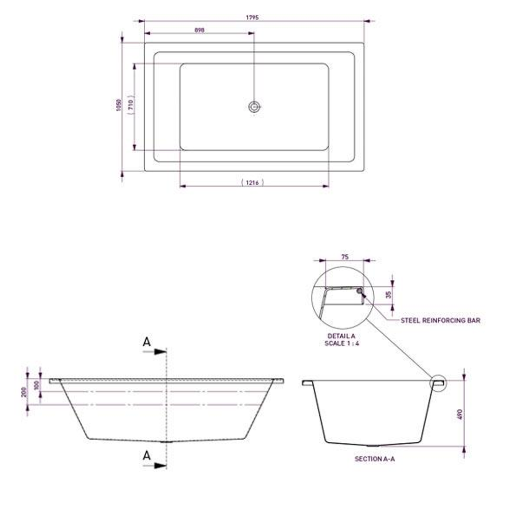Decina Lago Island Bath 1795mm