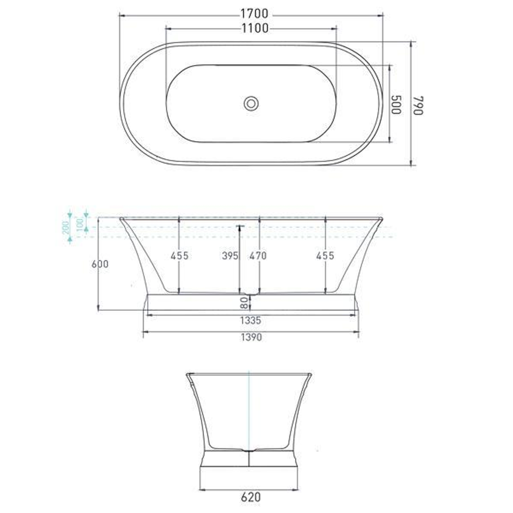 Decina Regent Freestanding Oval Bath 1700mm