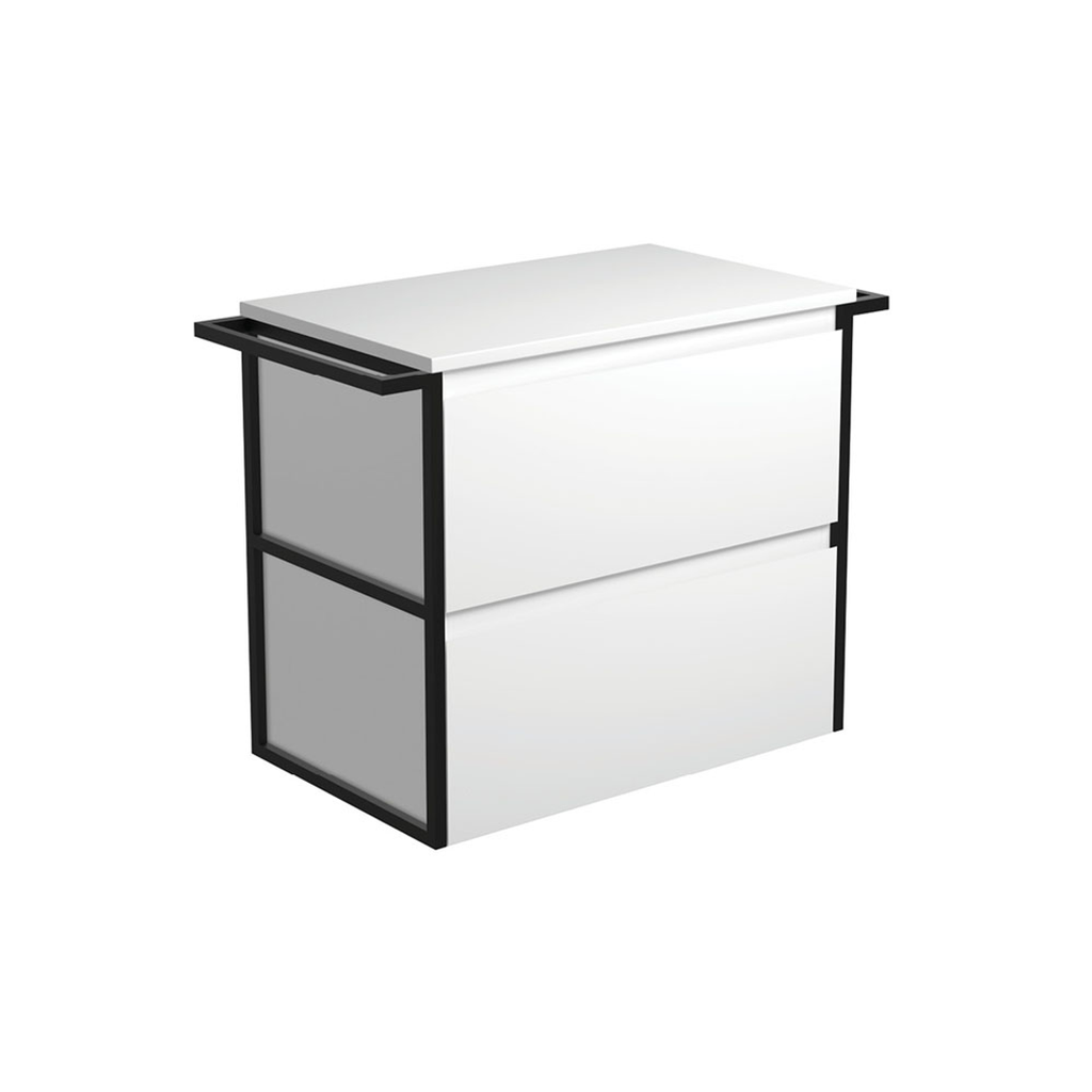 Fienza Amato 750 Cabinet Matte White Wall Hung Matte Black Towel Rails