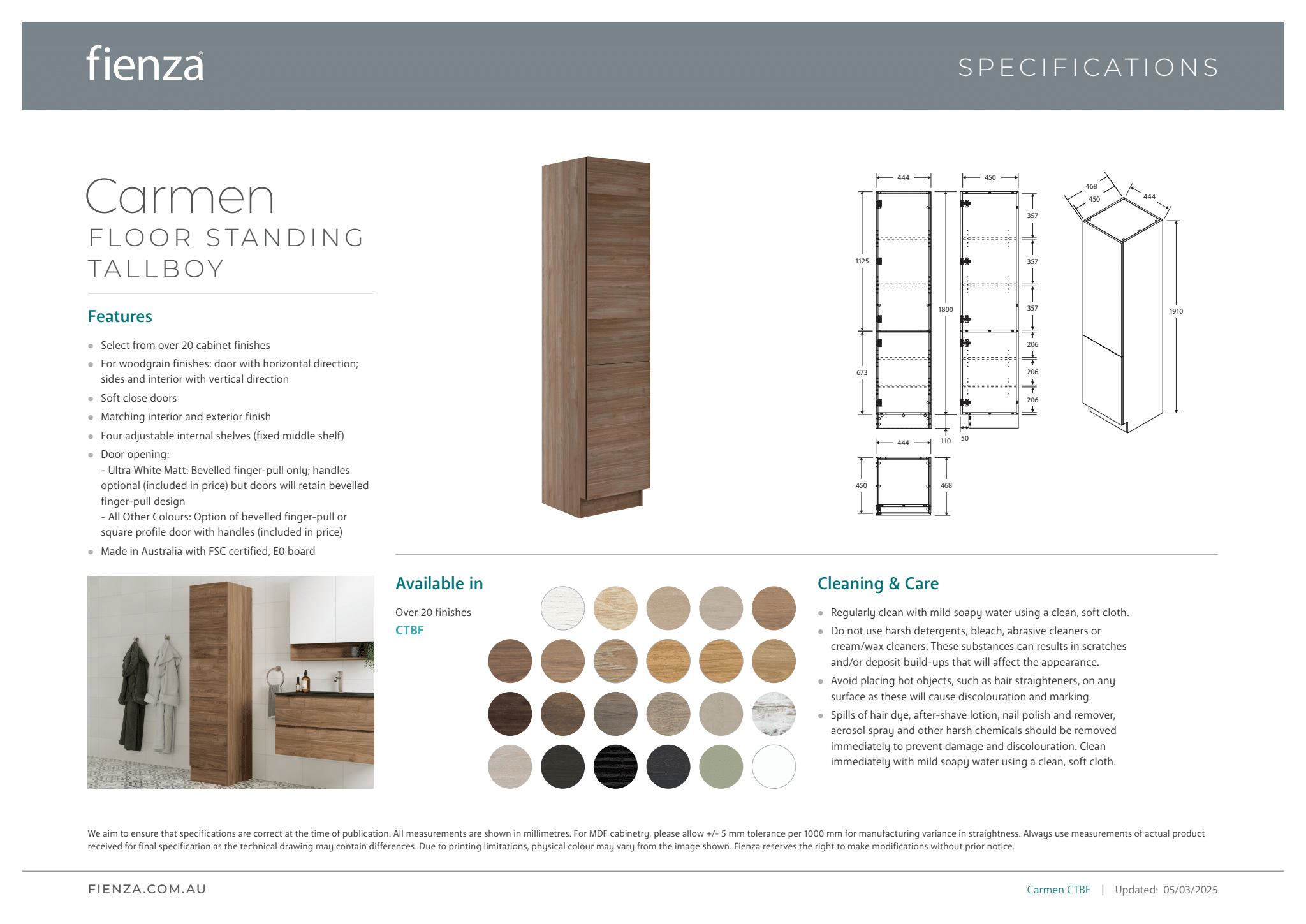 Fienza Carmen Tallboy Cabinet - Floor Standing Tallboy 2D 1910mm