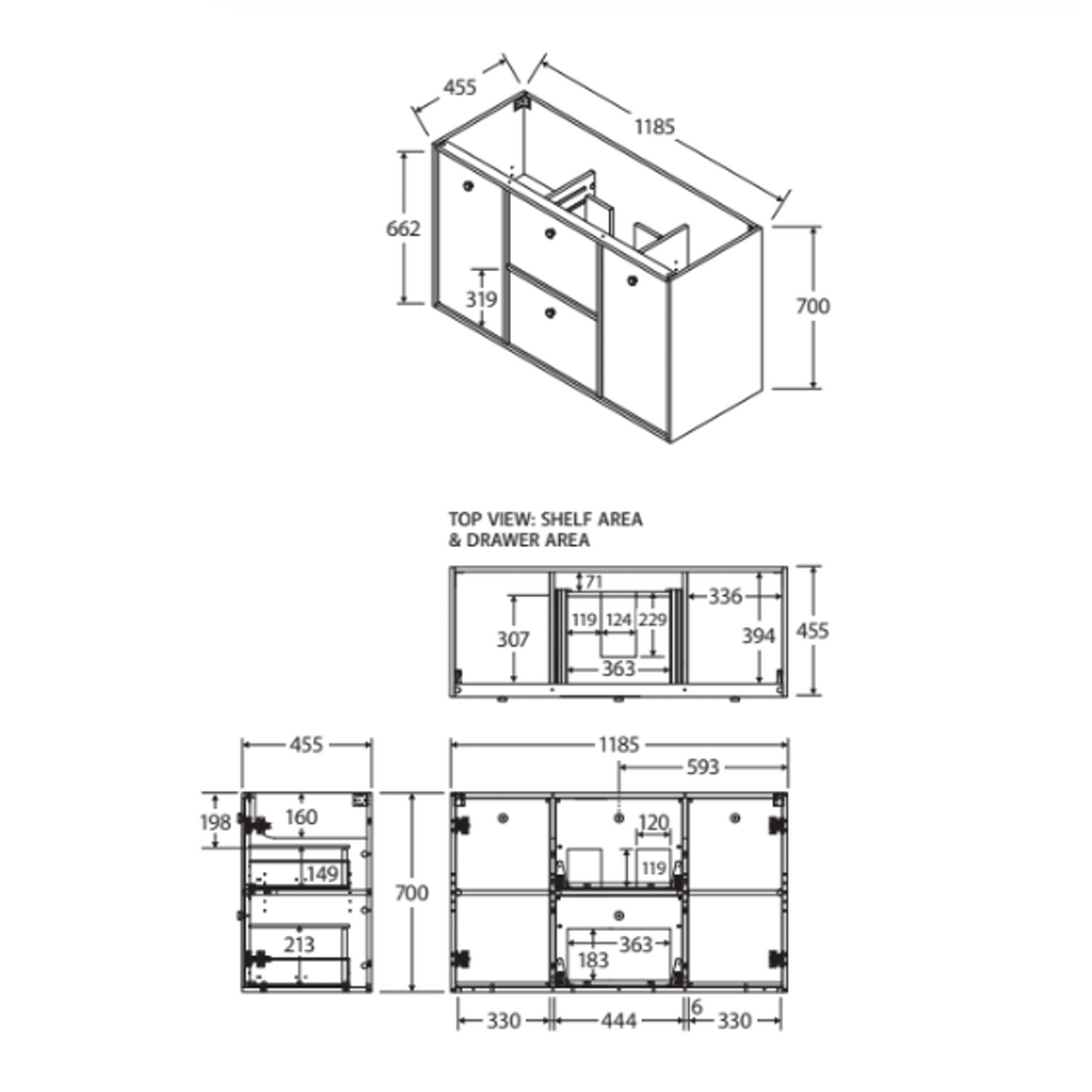 Fienza Cierra 1200 Single Bowl Wall-Hung Vanity Standard Stone Top