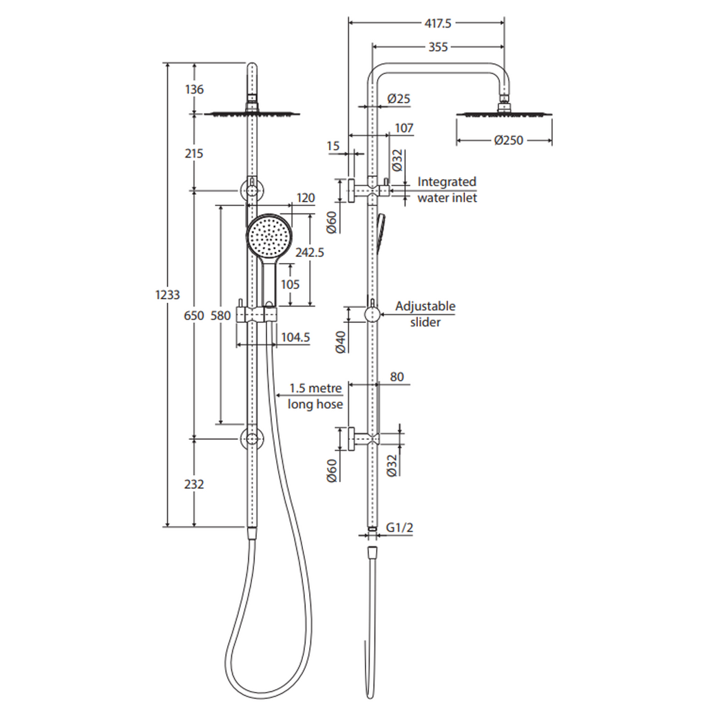 Fienza Kaya Twin Rail Shower - Gunmetal