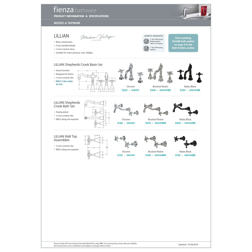 Fienza Lillian Shepherds Crook Bath Set Matte Black 336102Bk