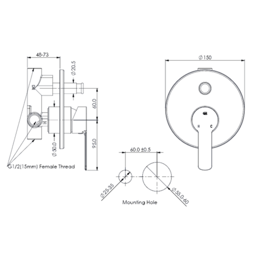 Greens Astro II Shower Diverter Mixer - Matte Black