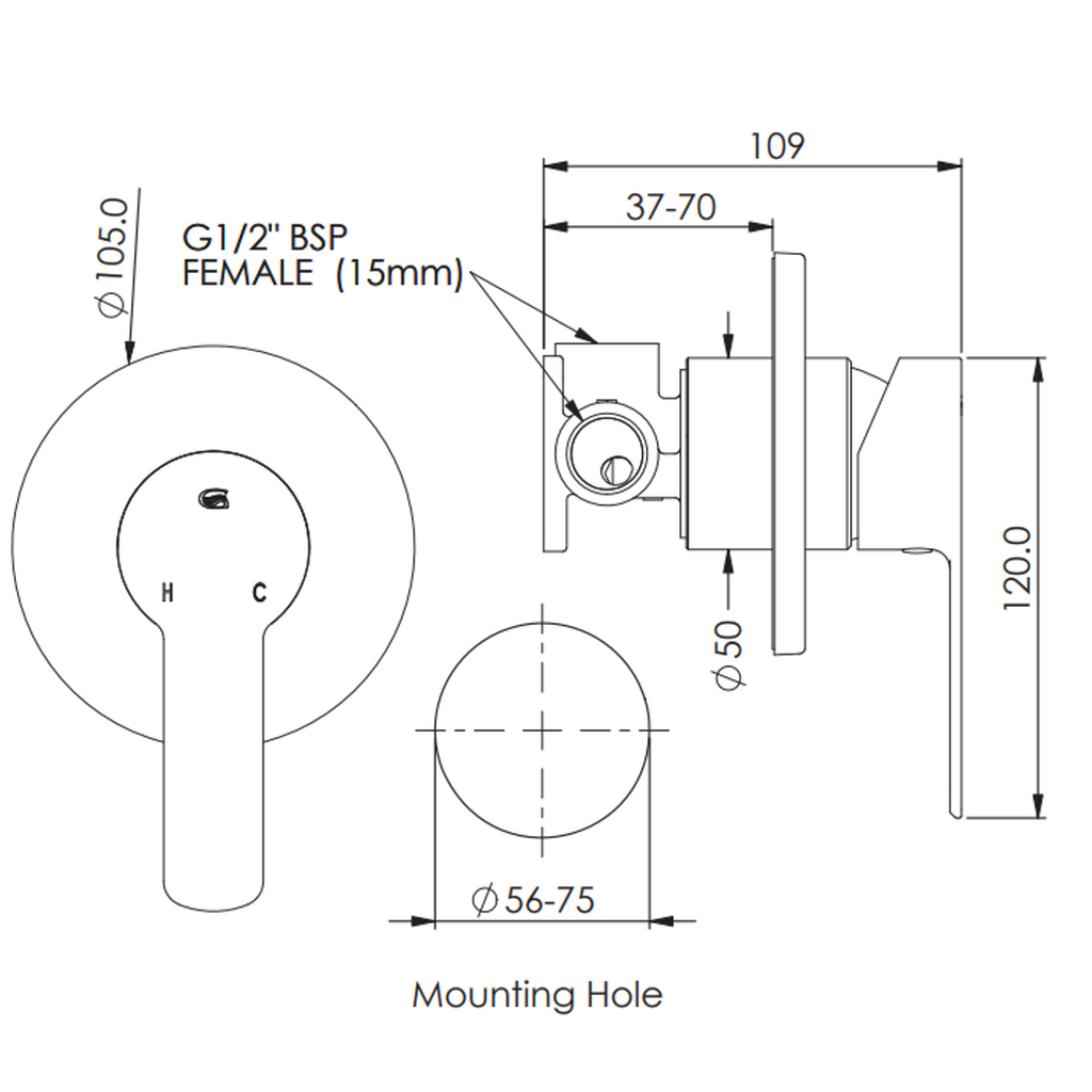 Greens Astro II Shower Mixer Mini Plate - Matte Black