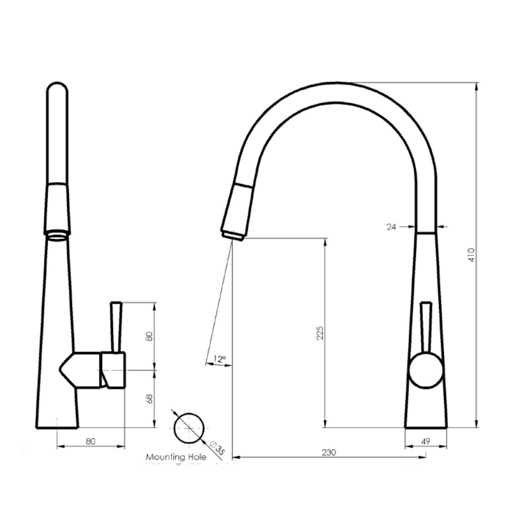 Greens Galiano Pull Down Sink Mixer - Brushed Nickel
