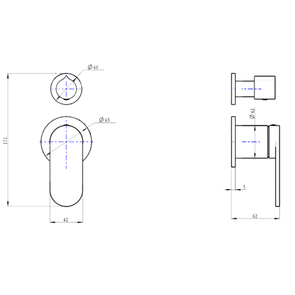 Linsol Capo 2-Plate Wall Mixer With Divertor Trim Kit - Gunmetal
