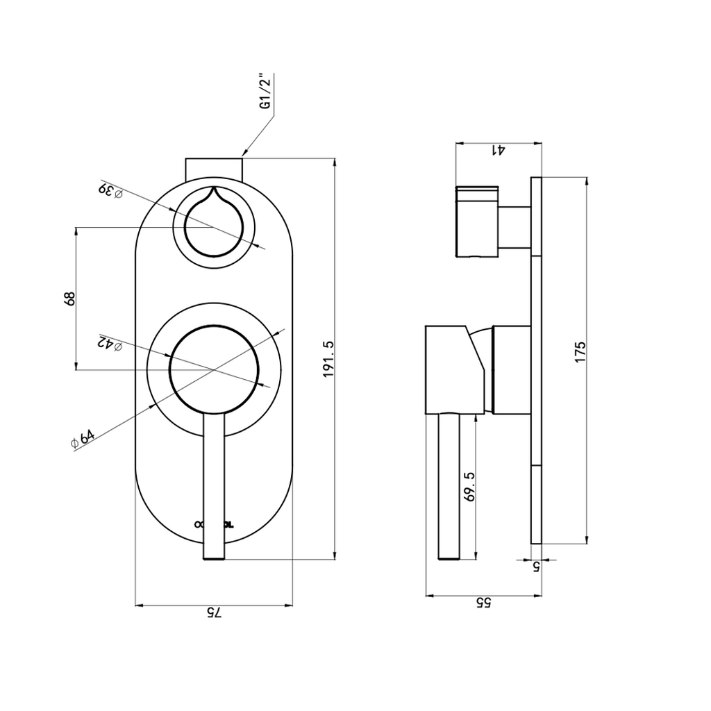 Linsol Gigi S3 1-Plate Wall Mixer With Divertor Trim Kit Matte Black