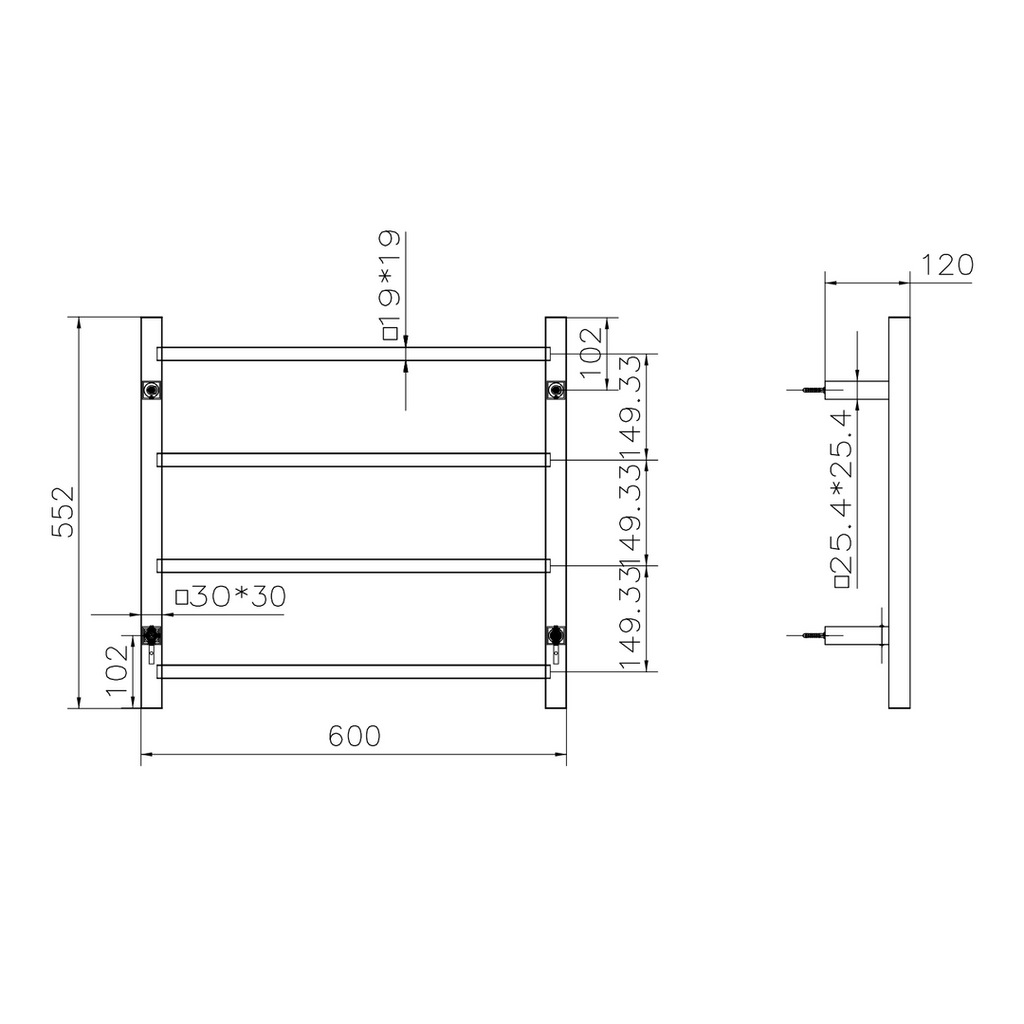 Linsol Spirit 4 Bar Heated Towel Rail - Gunmetal