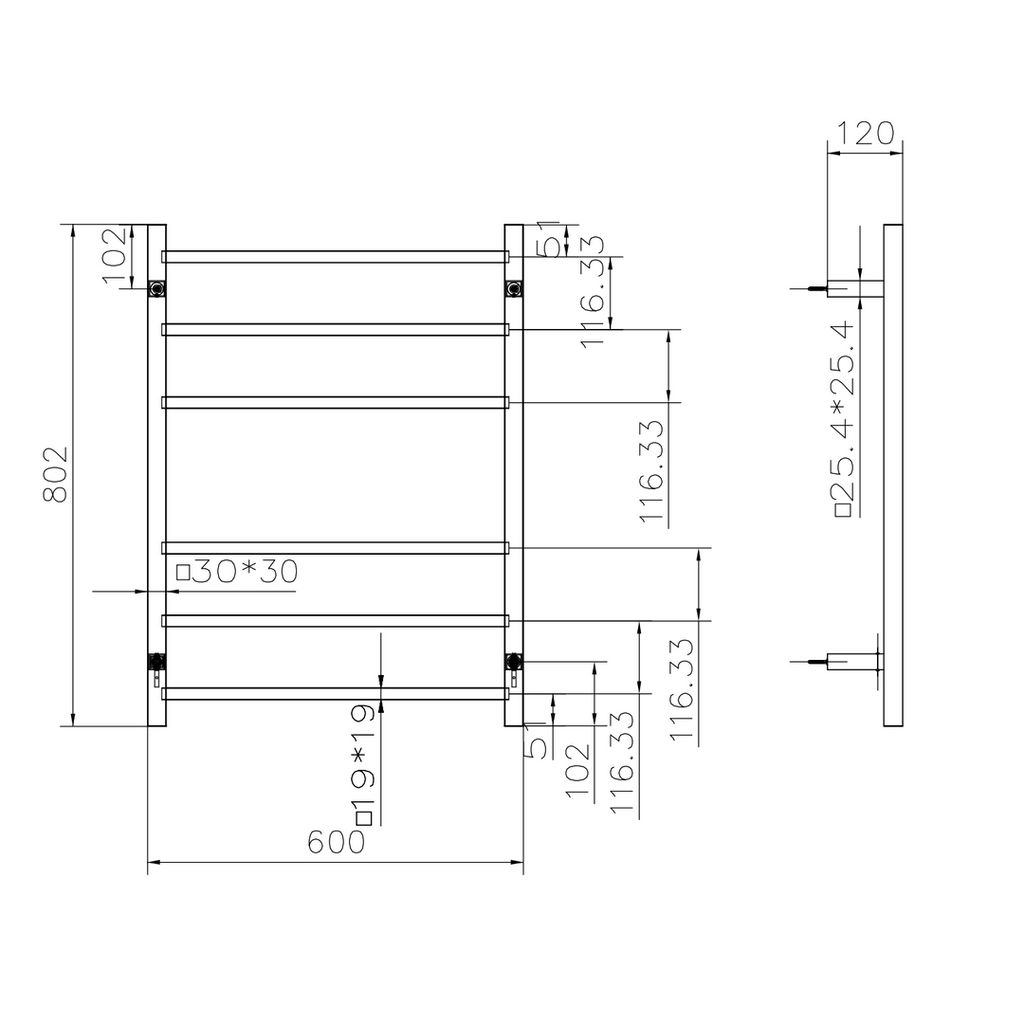 Linsol Spirit 6 Bar Heated Towel Rail - Gunmetal