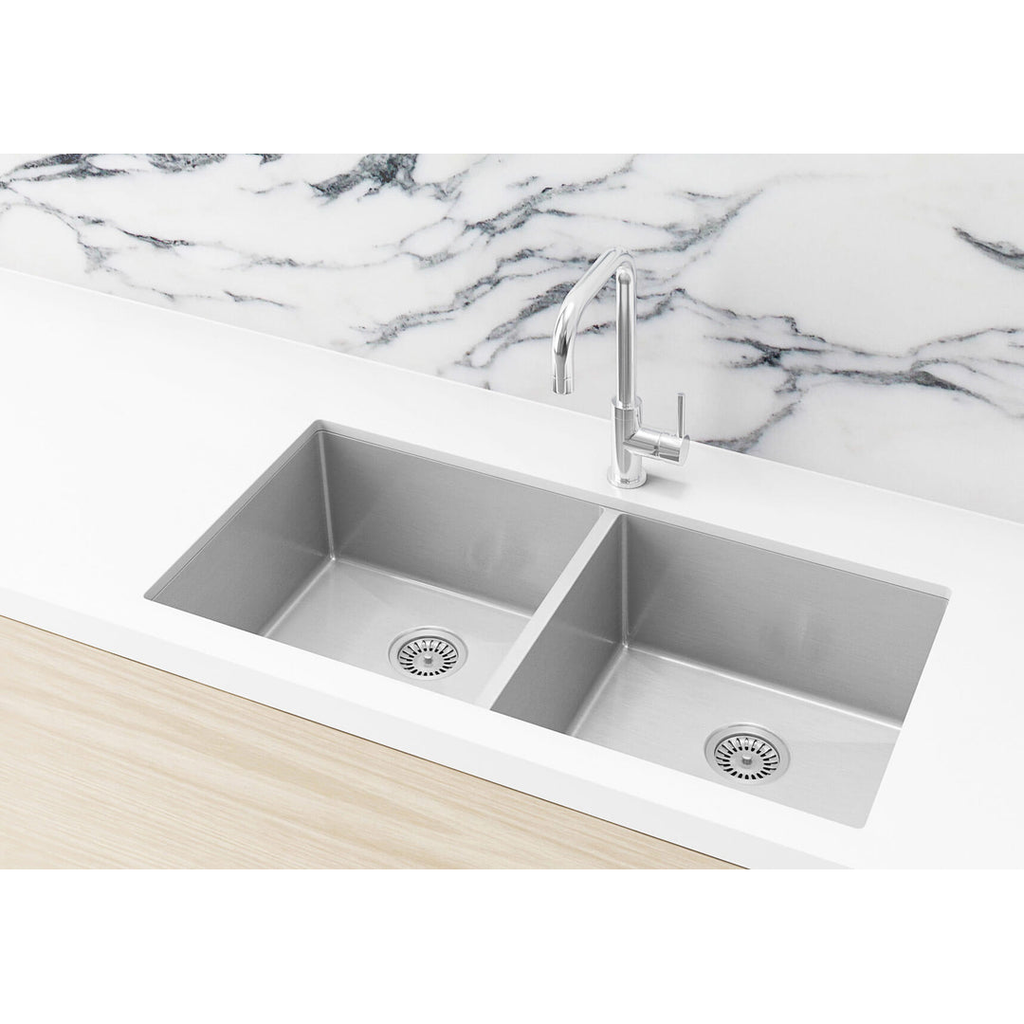 Meir Double Bowl Pvd Kitchen Sink 860mm - Brushed Nickel