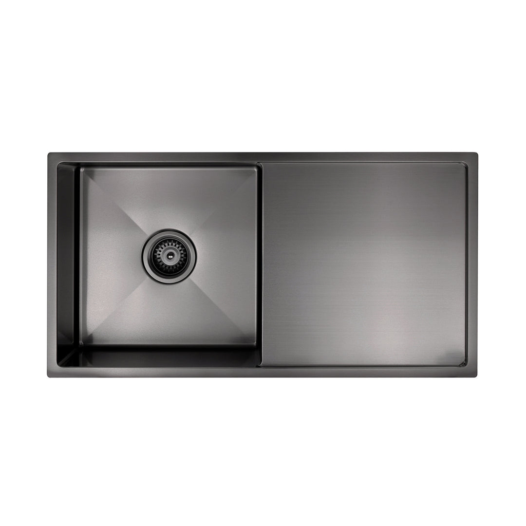 Meir Kitchen Sink Single Bowl & Drainboard 840 X 440 Brushed Nickel