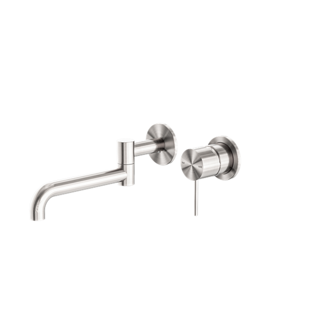 Nero Mecca Wall Basin/Bath Mixer Swivel Spout 225mm - Brushed Nickel