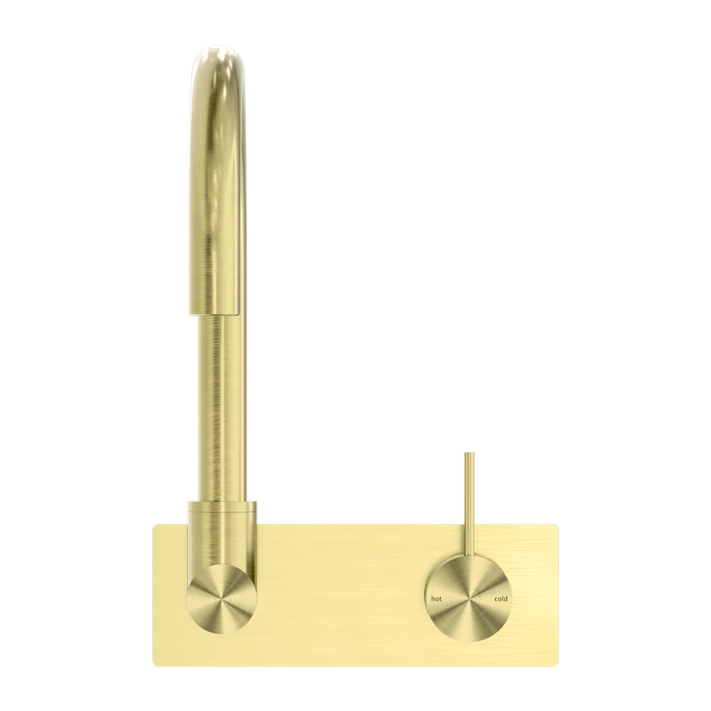 Nero Mecca Wall Basin/Bath Mixer Swivel Spout Handle Up - Brushed Gold