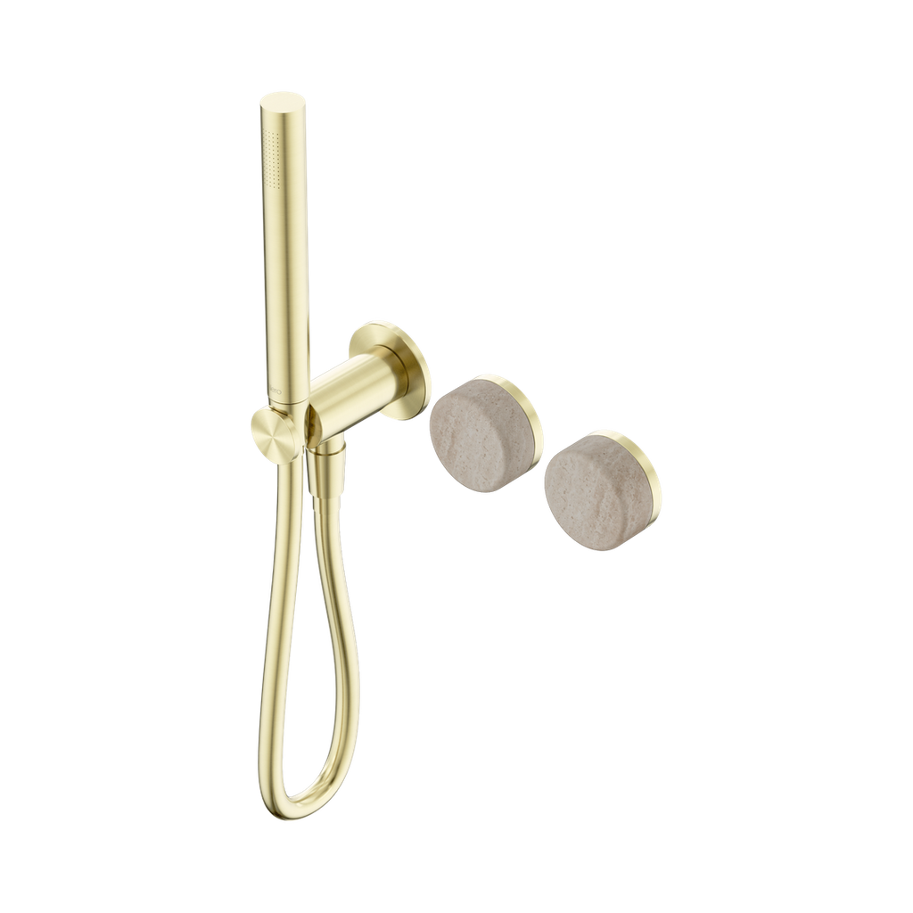 Nero Serenity Progressive Shower System With Rome Travertine Handle & Slim Shower Brushed Gold