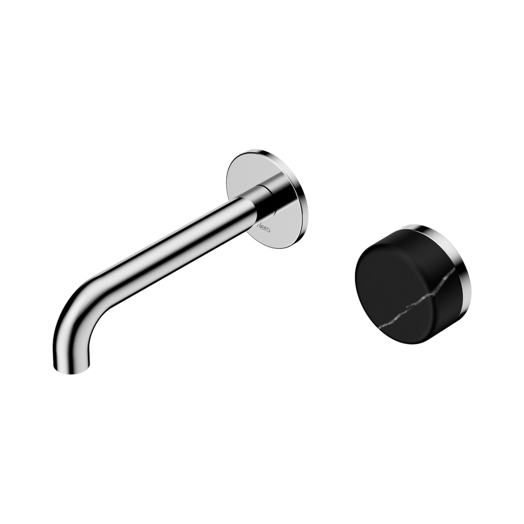 Nero Serenity Progressive Wall Basin Mixer 160Mm Spout With Marquina Black Handle Chrome