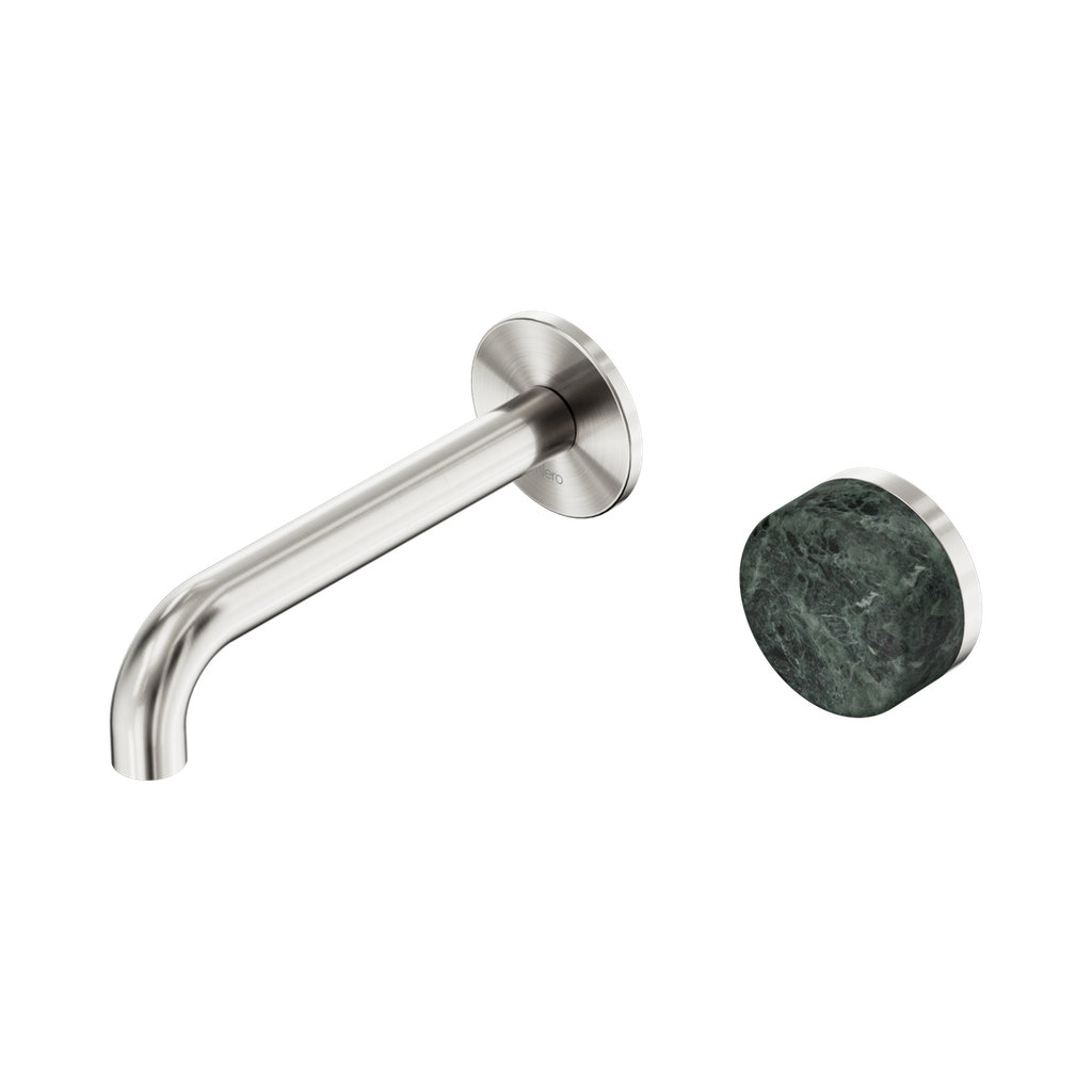 Nero Serenity Progressive Wall Basin Mixer 160Mm Spout With Verde Alpi Handle Brushed Nickel