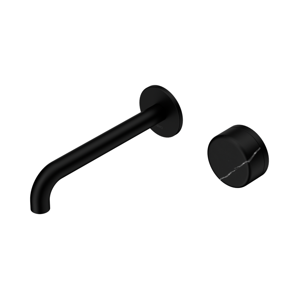 Nero Serenity Progressive Wall Basin Mixer 185Mm Spout With Marquina Black Handle Matte Black