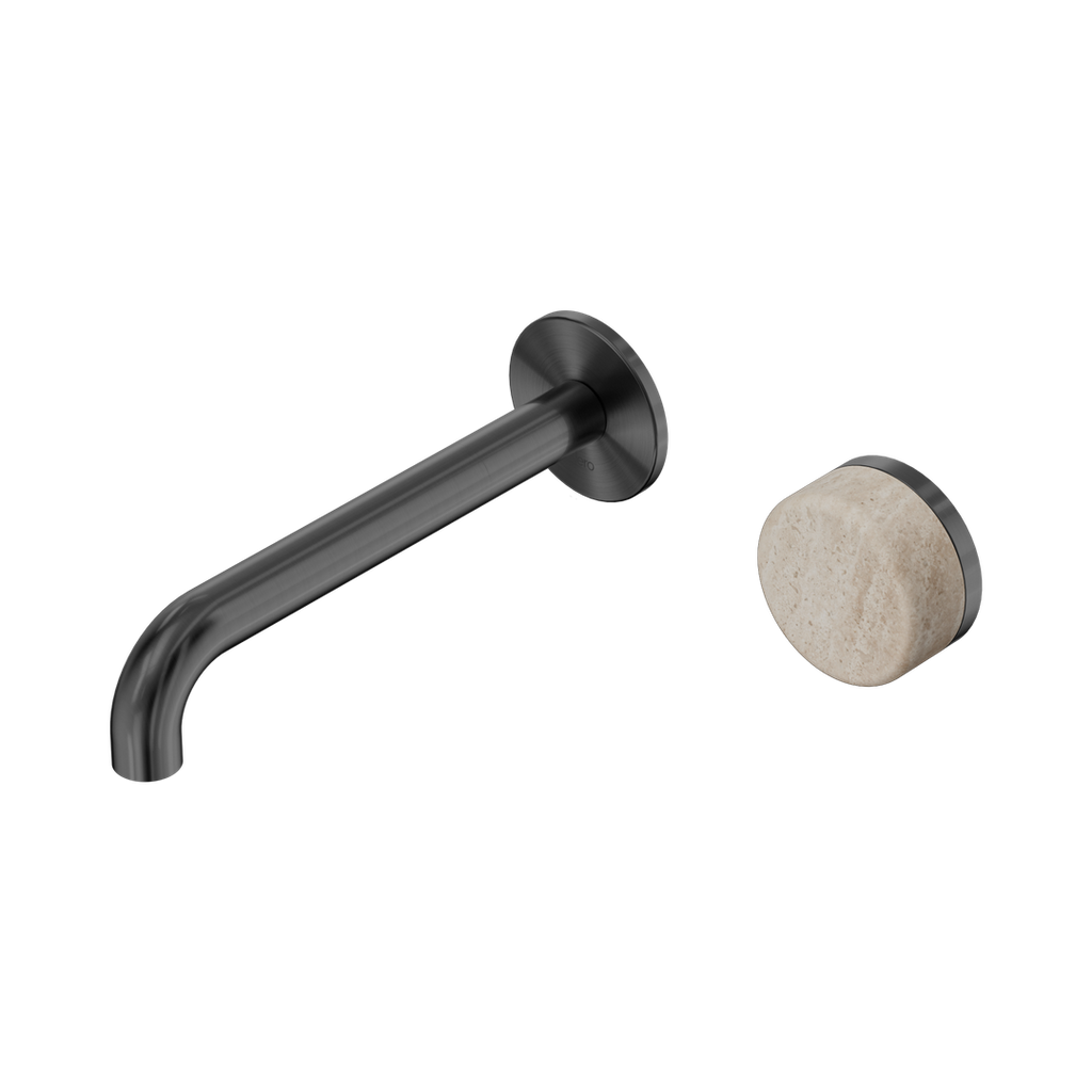 Nero Serenity Progressive Wall Basin Mixer 185Mm Spout With Rome Travertine Handle Gun Metal