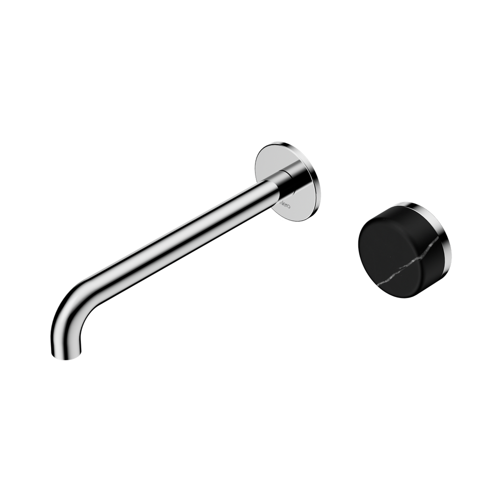 Nero Serenity Progressive Wall Basin Mixer 220Mm Spout With Marquina Black Handle Chrome