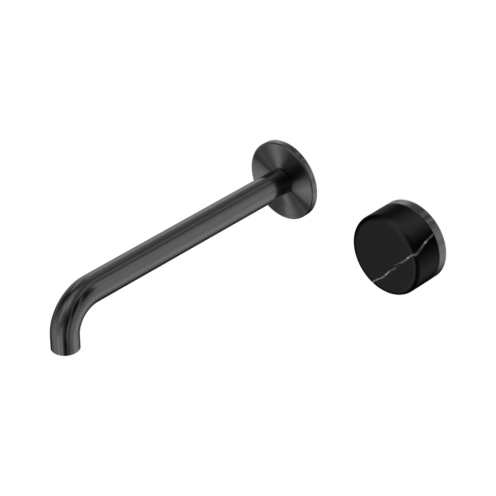 Nero Serenity Progressive Wall Basin Mixer 220Mm Spout With Marquina Black Handle Gun Metal