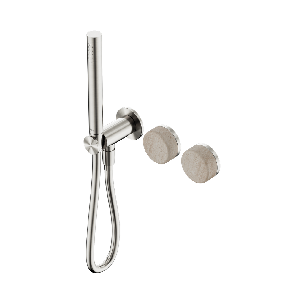 Nero Serenity Progressive Shower System With Rome Travertine Handle & Slim Shower Brushed Nickel