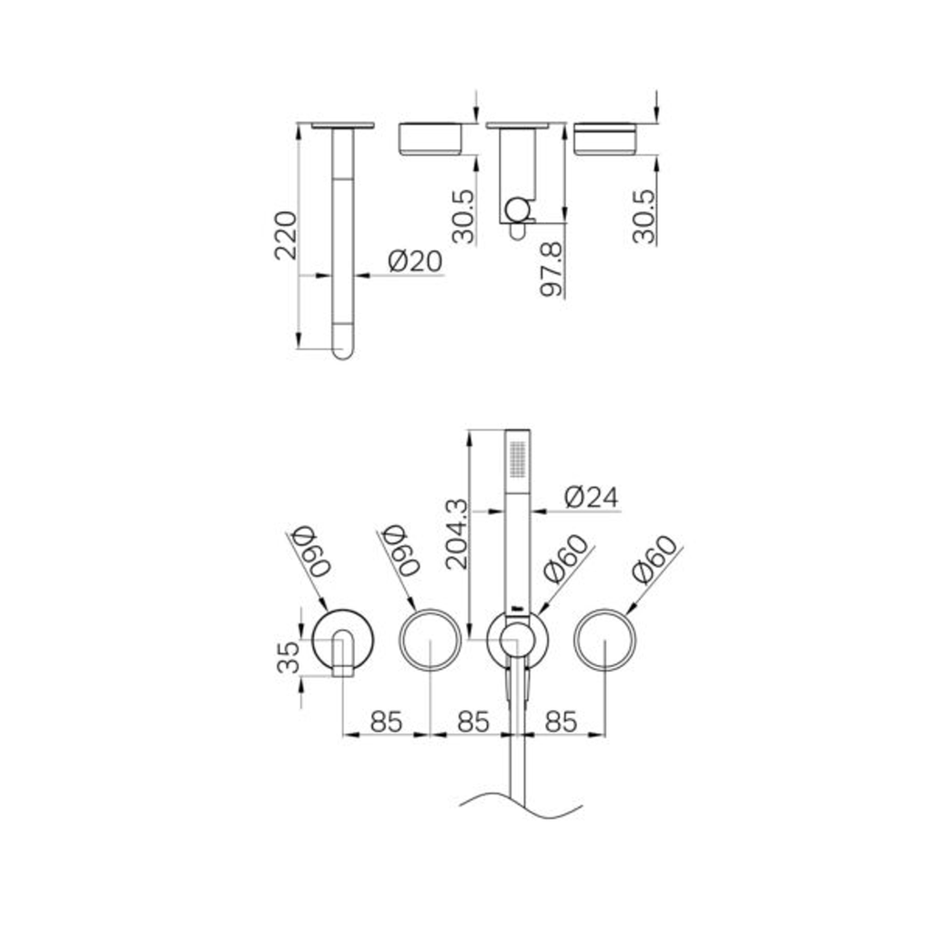 Nero Serenity Progressive Shower System With Spout WithMetal Handle & Slim Shower Trim Kit Only Brushed Bronze