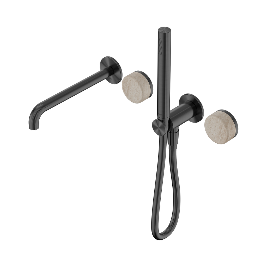 Nero Serenity Progressive Shower System With Spout With Rome Travertine Handle & Slim Shower Gun Metal