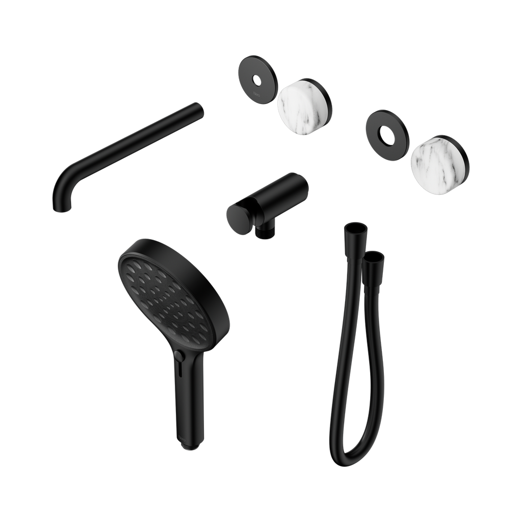 Nero Serenity Progressive Shower With Spout Corchia Handle & Serenity Hand Shower Trim Kit Only Matte Black