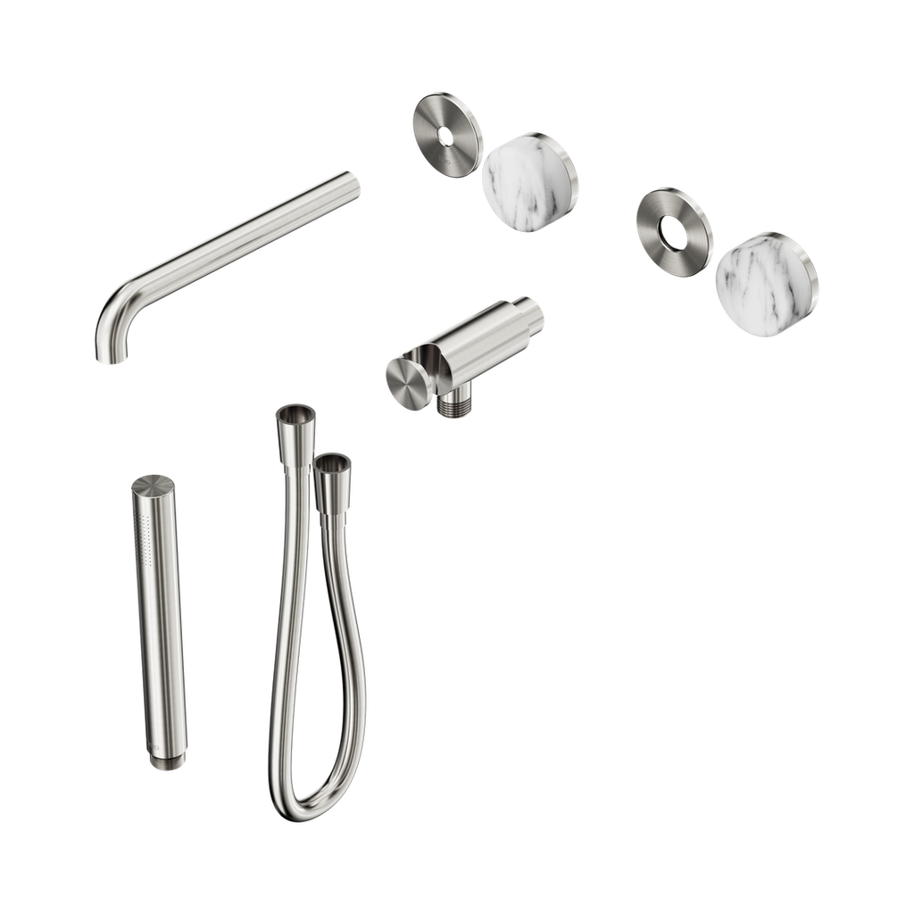 Nero Serenity Progressive Shower System With Spout Arabescato Corchia Handle & Slim Shower Trim Kit Only Brushed Nickel