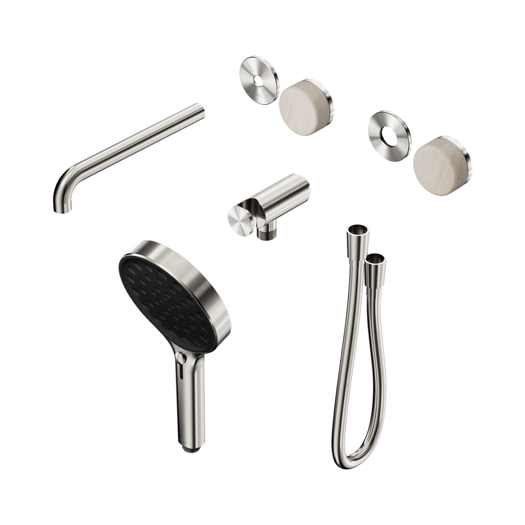 Nero Serenity Progressive Shower With Spout Rome Travertine Handle & Serenity Hand Shower Trim Kit Brushed Nickel