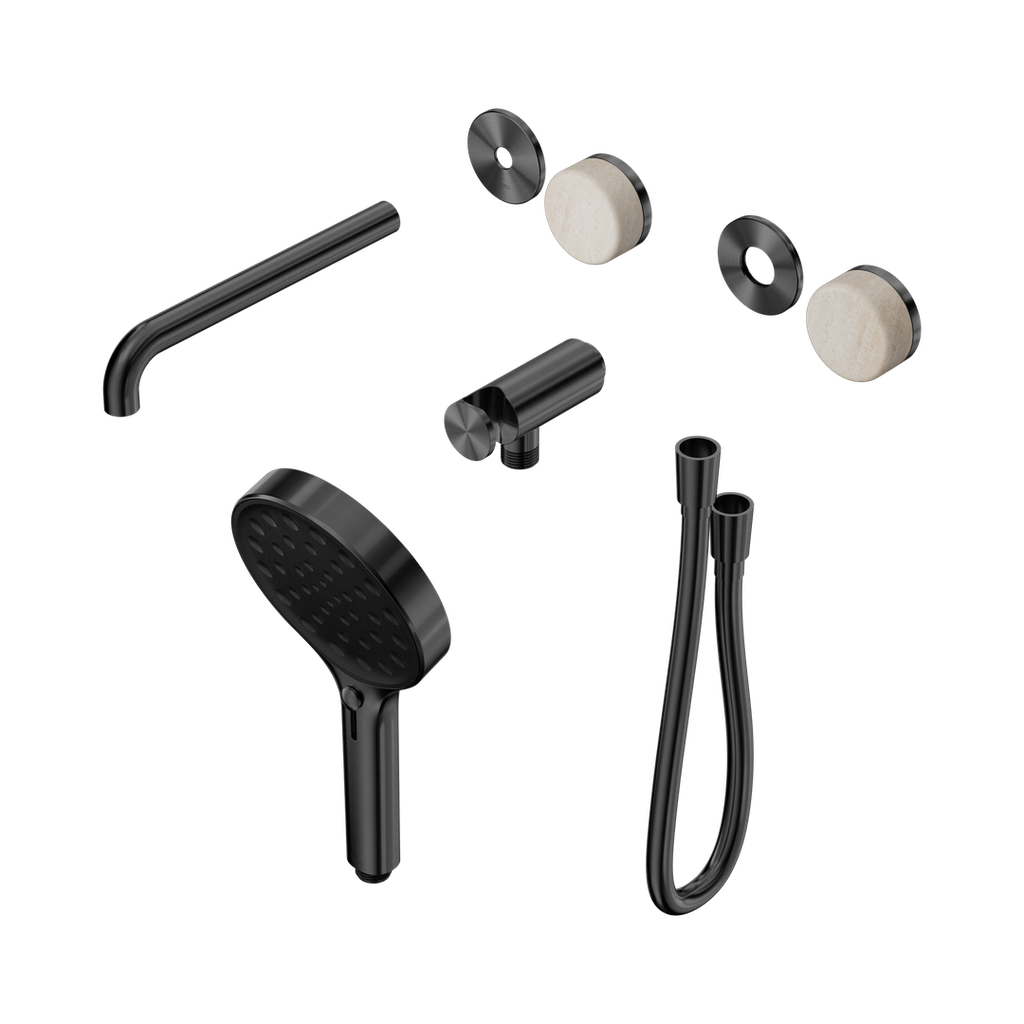 Nero Serenity Progressive Shower With Spout Rome Travertine Handle & Serenity Hand Shower Trim Kit Only Gun Metal